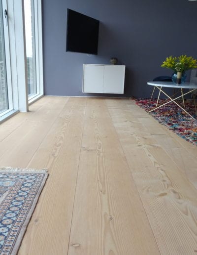 Douglas gulve behandlet med olie, kan genopfriskes med olie/voks og vaske med WOCA Natursæbe.