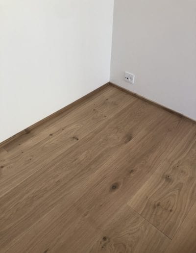 Olie: Gulvplankerne olieres 3 gange med lufthærdende olie fra WOCA. De første 2 gange er med klar eller pigmenteret olie. Den behandling er altid med klar olie/voks, som giver gulvet en stærk og vandafvisende overflade.