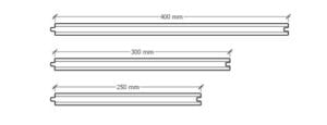 1) 250 x 3000mm, 2) 300 x 3000mm, 3) 300 x 4000mm 4) 400 x 3000mm og 5) 400 x 4000mm